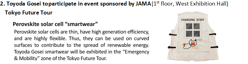 Toyoda Gosei is also participating in the Tokyo Future Tour of the Japan Automobile Manufacturers Association (JAMA).