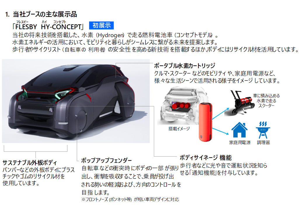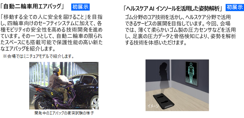 今回の当社ブースでは、未来のモビリティと暮らしを支える技術について、ゴムやプラスチック分野の強みを活かした