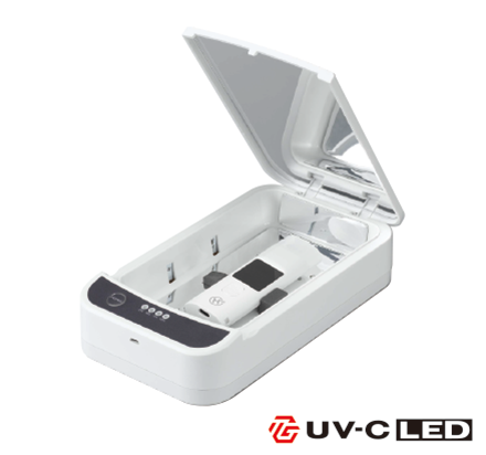 - アルコール消毒では除菌しにくいアルコールチェッカーやスマートフォンなど、身の回りの小物にUV-C (深紫外線)を照射・除菌。