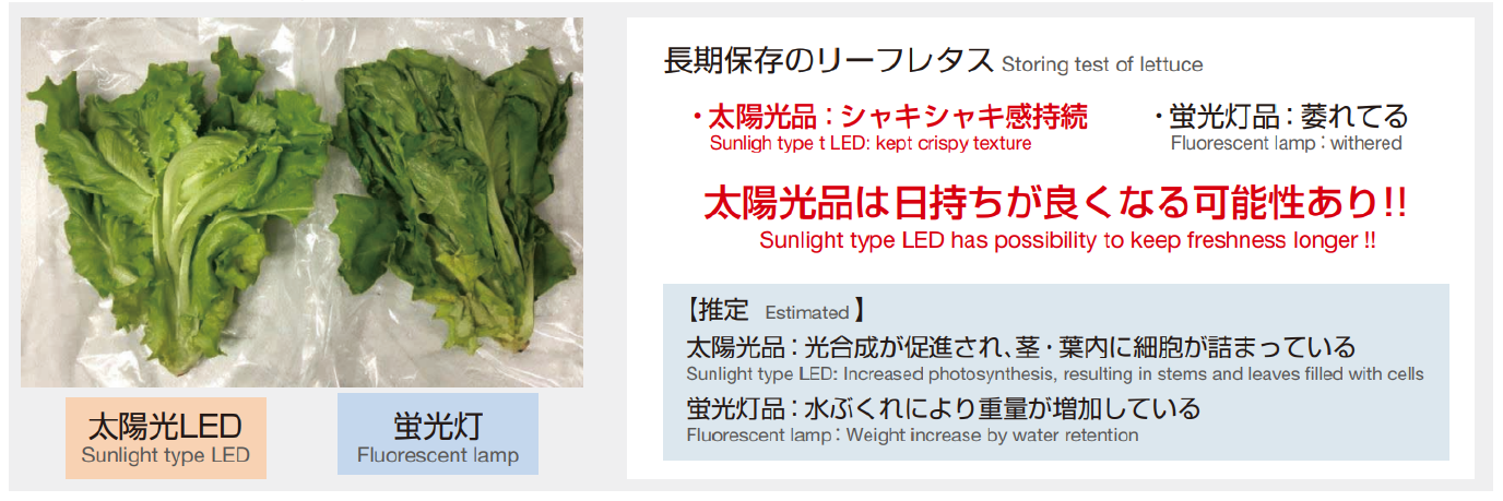 - 試験内容: 各光源下でのリーフレタスの育成状態及び育成後の成分含有量を評価*